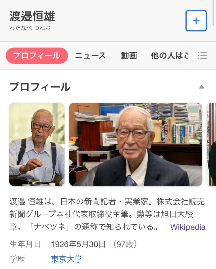 【朗報】渡辺恒雄さん、3日後に98歳の誕生日を迎える