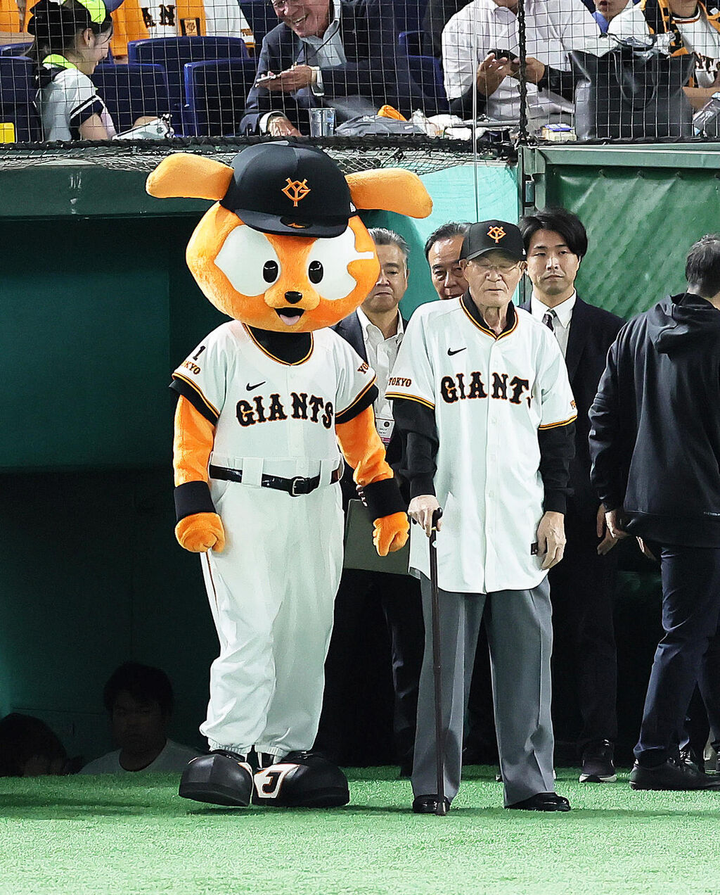 セレモニアルピッチには原辰徳前監督(65)が務めた。先発の山崎伊とマウンド上でグータッチを交わし、三塁を守る坂本にも合図を送った。