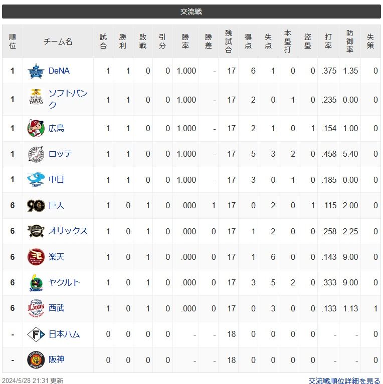 【交流戦】鷹鴎星竜鯉-/虎公/-兎燕鷲猫檻