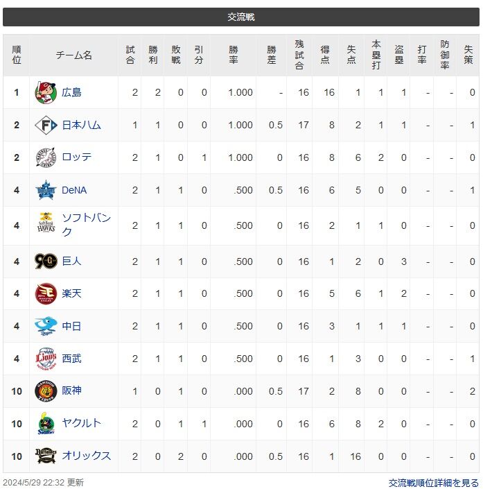 【交流戦】鯉-鴎公-/鷹星竜鷲猫兎/-燕虎-檻