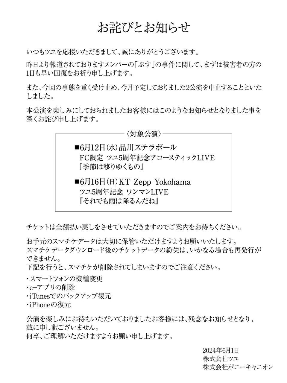 音楽ユニット「ツユ」ライブ中止 ギタリストの「ぷす」が殺人未遂で逮捕 10代少女を刺して重傷を負わす