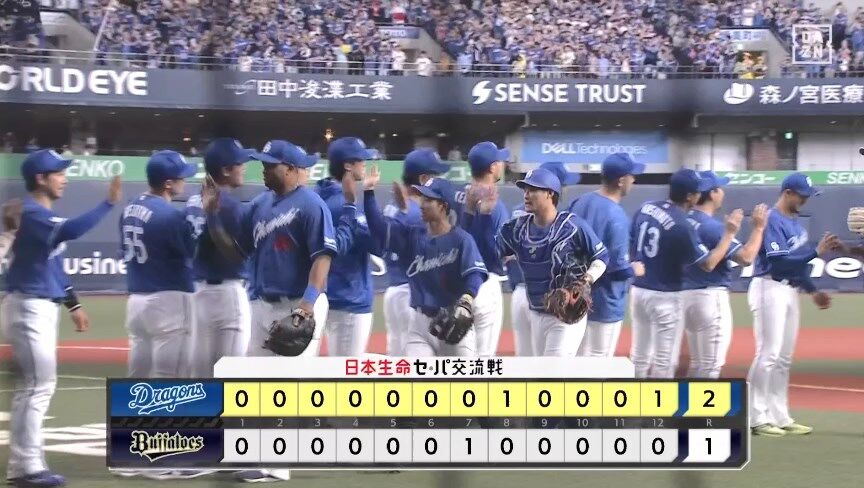【オリックス対中日3回戦】中日が2-1でオリックスとの延長戦を制し連勝!カード勝ち越し!4位浮上!延長12回に中田翔が決勝打!オリックスは逆転負け