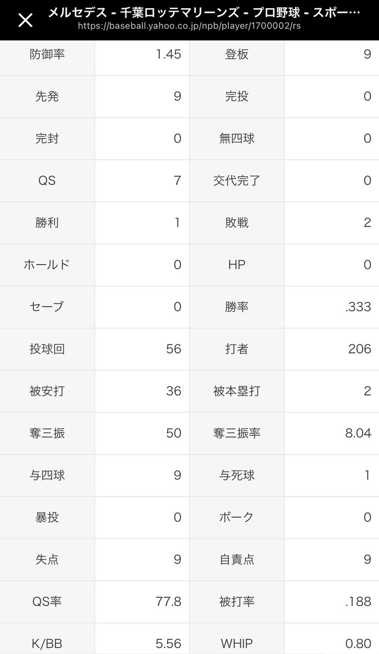 元巨人メルセデス、パ・リーグ防御率1位になってしまうwwwwwww