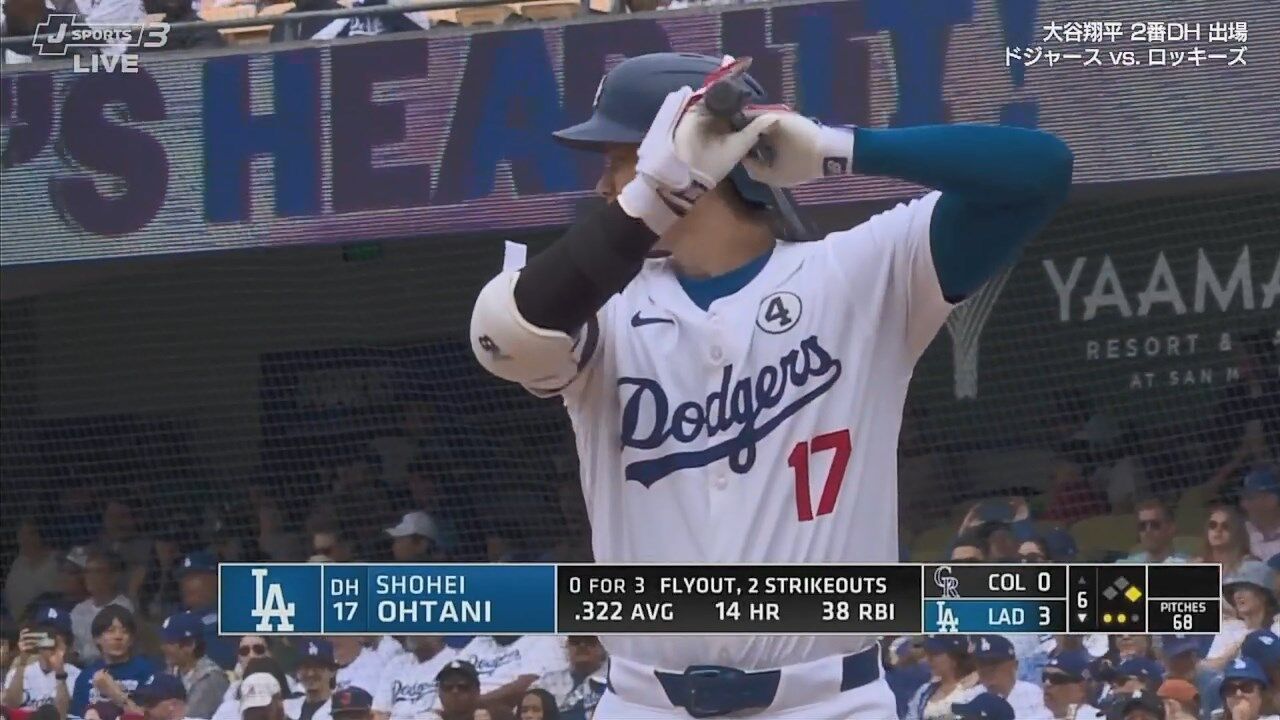大谷 3打数0安打 .322 14本 38打点 14盗塁