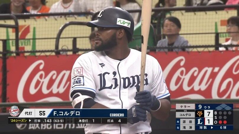 西武 コルデロの出場選手登録を抹消 打率・141、1本塁打