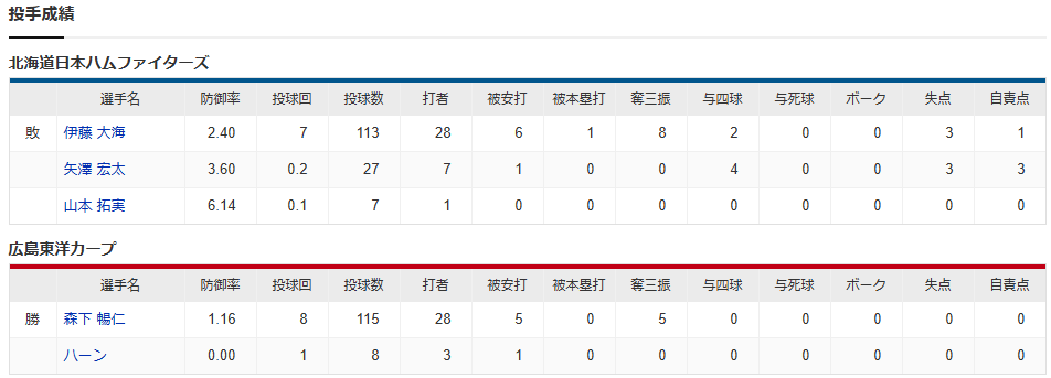 ※広島が連敗を5でストップ 先発・森下は8回5安打無失点で5勝目