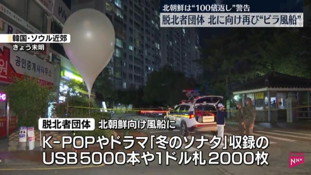 【朗報】韓国の脱北者団体、北朝鮮の汚物風船のお返しK-POPや冬のソナタのUSB風船を飛ばす