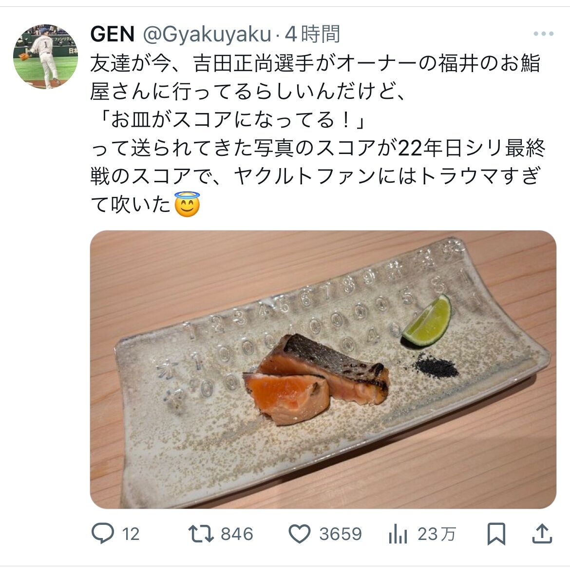 吉田正尚の寿司屋、とんでもない皿でネタをご提供