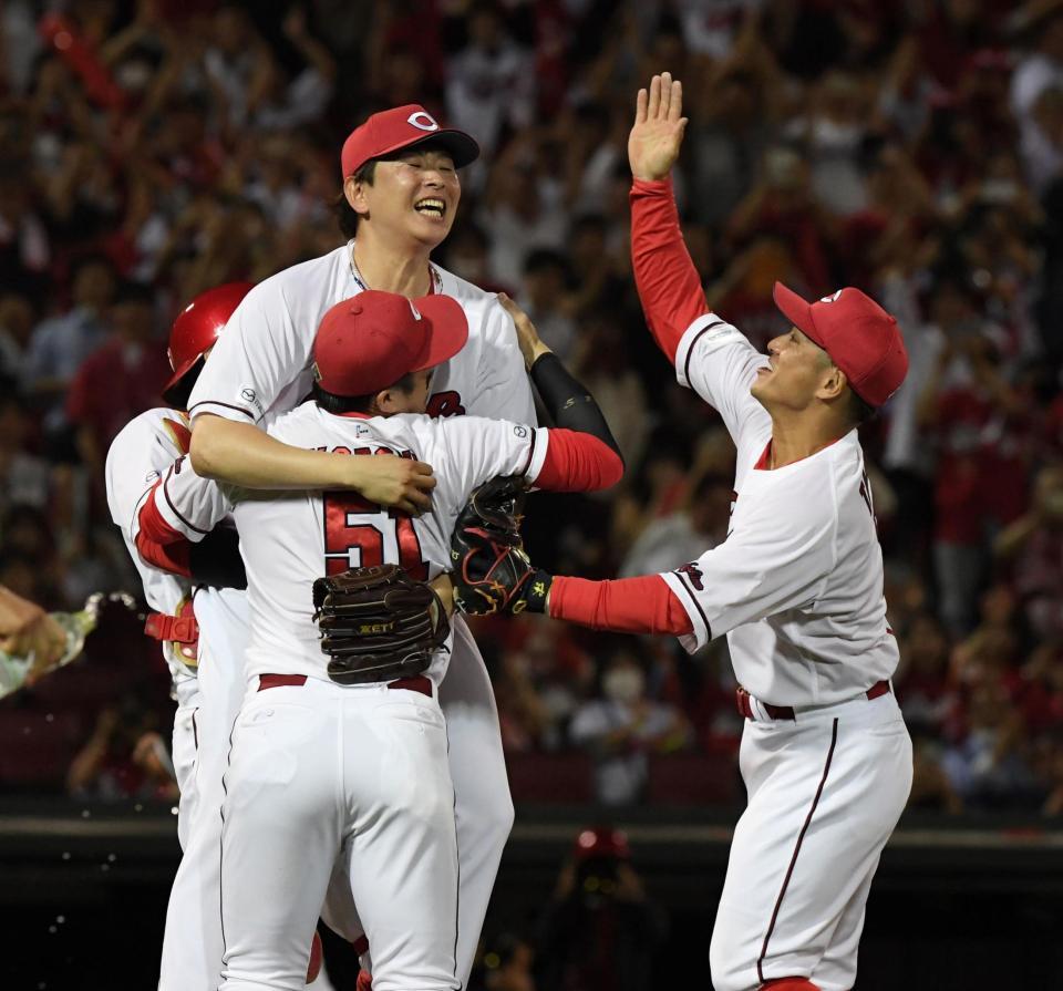 ヒーローインタビューで大瀬良は「ちょっとまだ信じられない。自分のことじゃないような気持ち。そういったものには無縁だと。九回はここまできたらと思って、最後の気力を振り絞って投げました」と、夢見心地で振り返った。