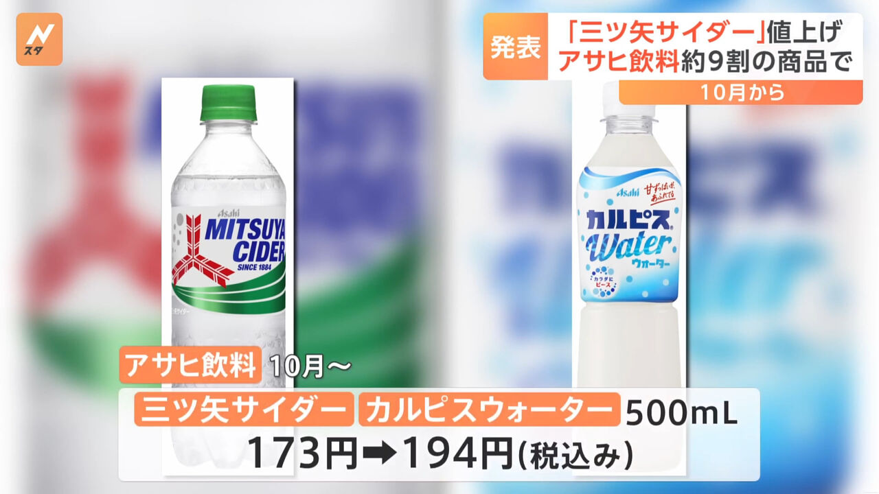 三ツ矢サイダーの500ミリリットルペットボトルは173円から194円に上がる。 同商品の値上げは2022年10月以来2年ぶり。 カルピスウォーターの1.5リットルペットボトルは432円から459円になるhttps://www.nikkei.com/article/DGXZQOUC135Q90T10C24A6000000/