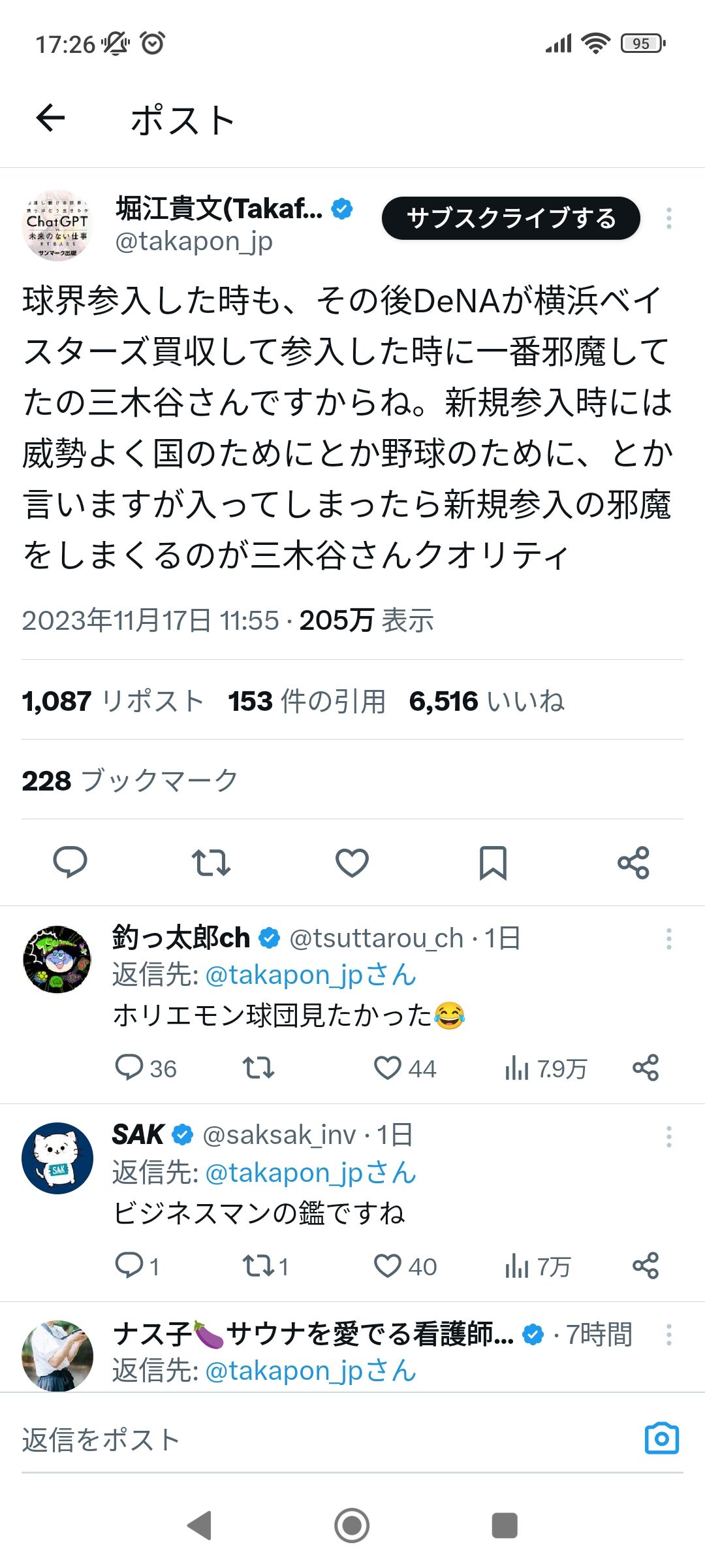 — 堀江貴文(Takafumi Horie) (@takapon_jp) November 17, 2023