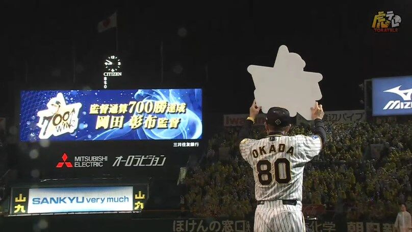 【阪神対中日12回戦】阪神が8-1で中日に勝利し連敗ストップ!岡田彰布監督が監督通算700勝を達成!村上頌樹が約1か月半ぶりの3勝目!