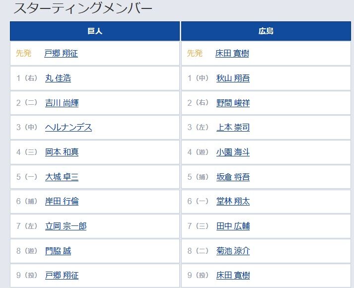 6 (捕) 岸田 行倫 6 (一) 堂林 翔太