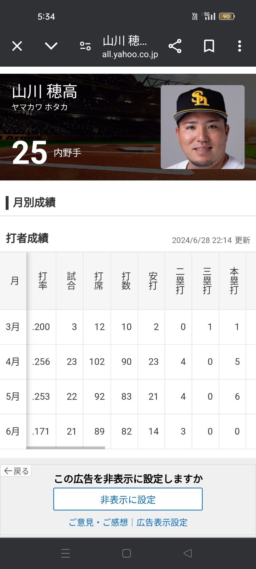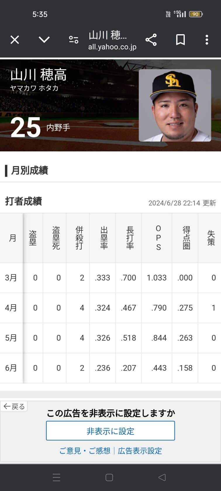 山川穂高(6月)「打率.171(82-14)0本 4打点 OPS.443」←こいつについての率直な感想wwwww