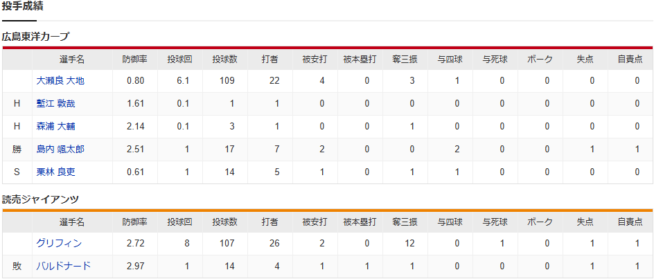 カープ菊池6号決勝弾!大瀬良35.1回連続無失点で球団歴代2位!矢野先制打!塹江森浦ナイス火消し!栗林21S締め!投手戦制し東京D今季初勝利!【広島2-1巨人/試合結果】
