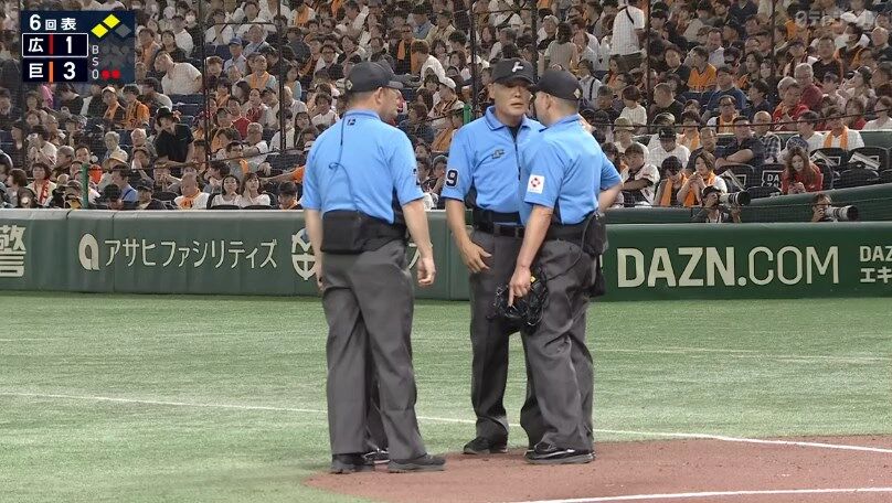 【巨人対広島12回戦】巨人の投手交代巡り審判団が勘違いで大混乱 審判団が集まって協議 結局、認められる