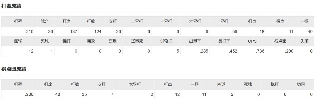 筒香嘉智(3億) .210 6本 18点 得点圏.200 OPS.736←こいつを獲りに行かなかった球団