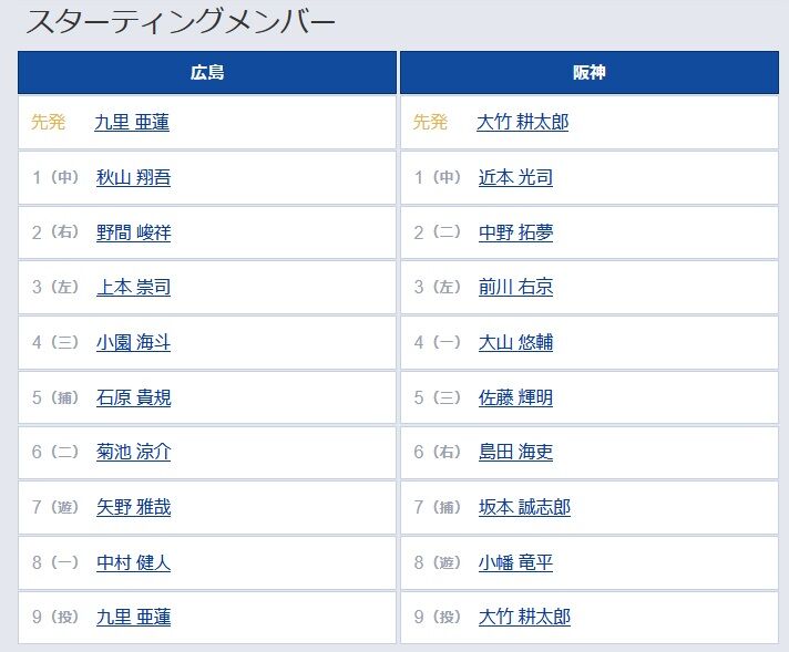 【広島対阪神12回戦】3(左) 前川 右京 6(右) 島田 海吏