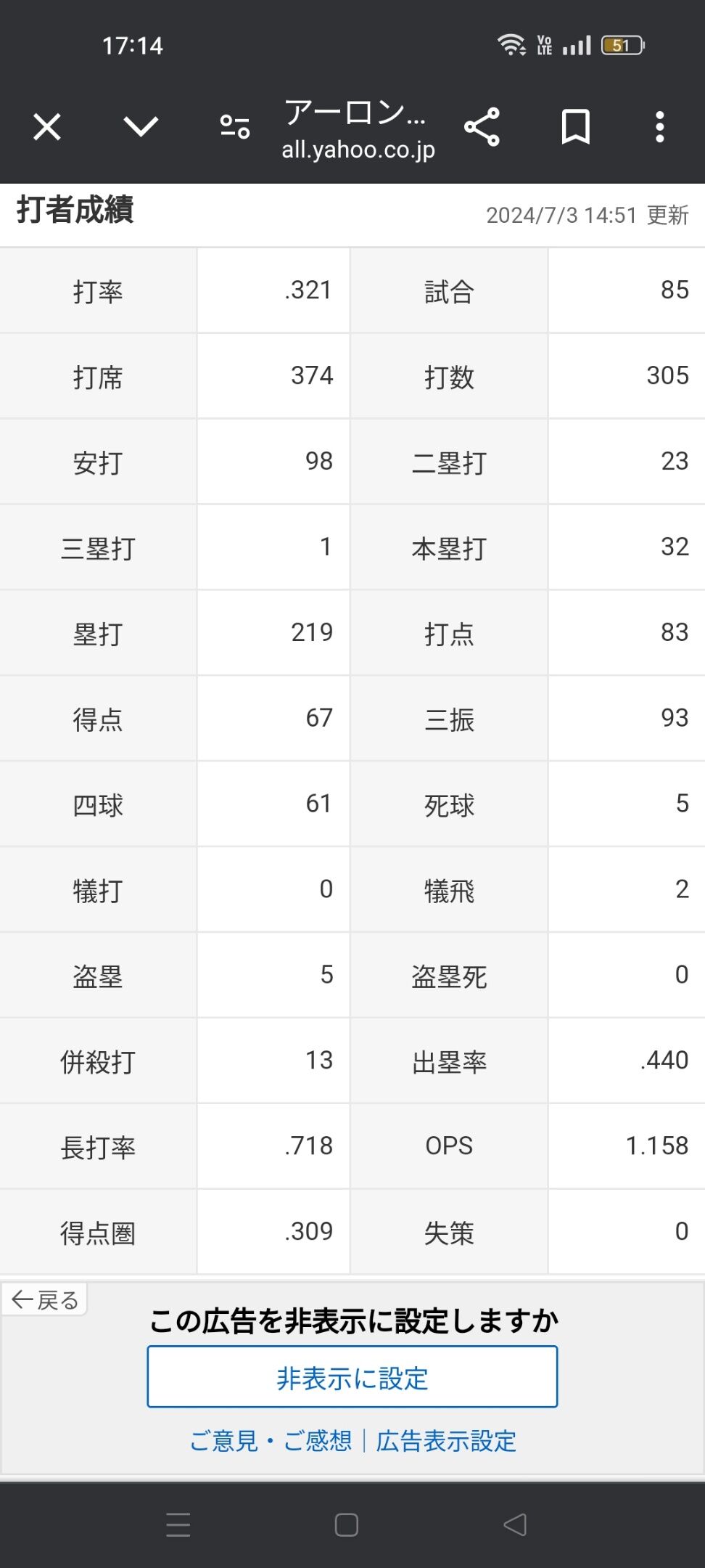 アーロン・ジャッジ「打率.321(305-98)32本 83打点 OPS1.158 得点圏.309」←こいつwwwww
