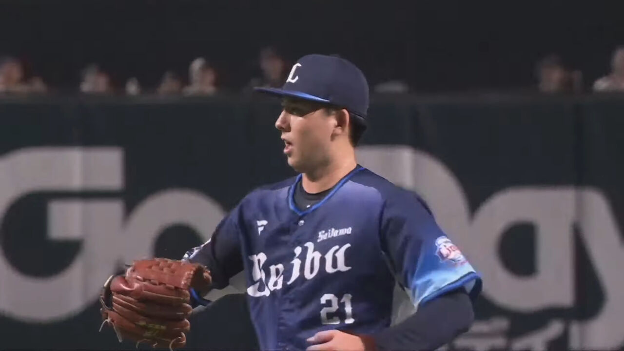 7回は先頭の山川をスライダーで左飛に打ち取ると、近藤は外角直球で見逃し三振に仕留めた。最後は正木を中飛と三者凡退で切り抜けた。
