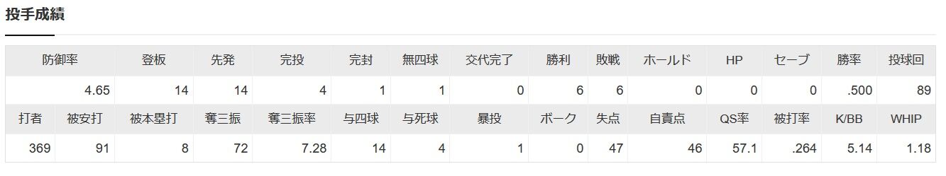 ロッテ・小島和哉 14先発 6勝6敗 89回 防4.65 ←率直な感想
