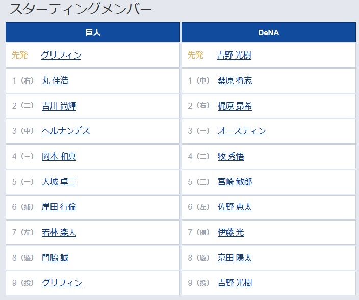 【巨人対DeNA12回戦】4(三) 岡本 和真 6(捕) 岸田 行倫