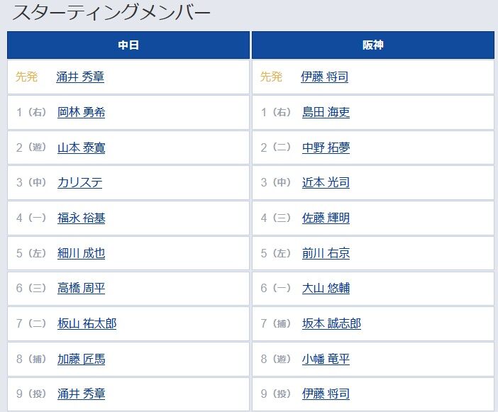 【阪神スタメン】