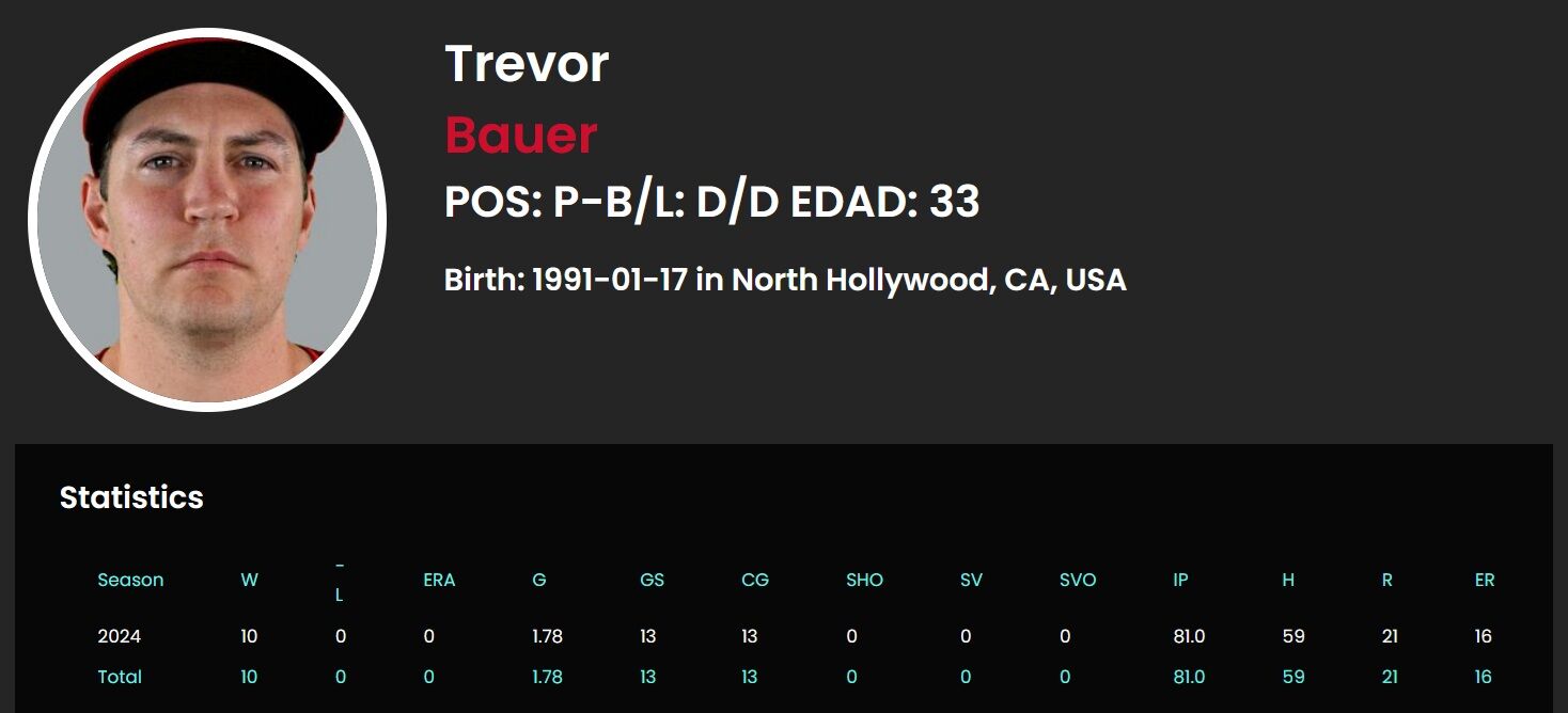バウアーさん、13登板10勝0敗防御率1.78 117奪三振