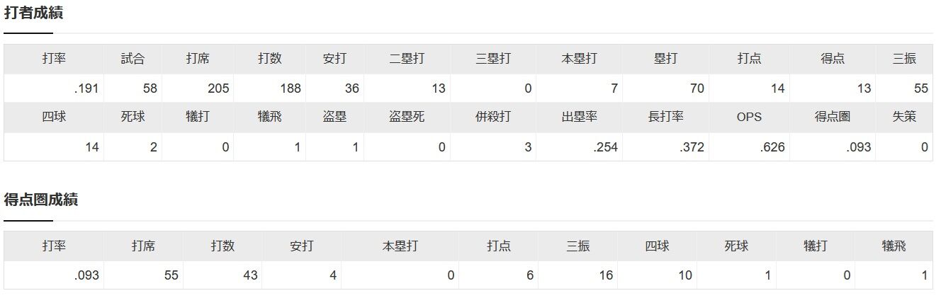 今季成績 58試合 .191 7 14