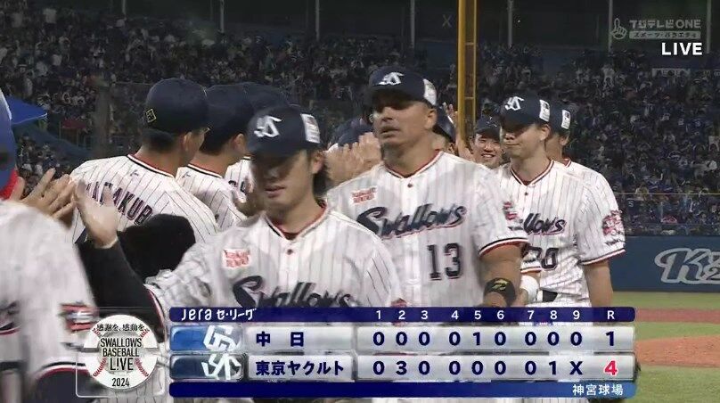 【ヤクルト対中日13回戦】ヤクルトが4-1で中日に勝利し連敗8でストップ!村上から4連打などで3点先制!ヤフーレが好投5勝目!5位中日と3・5差に!