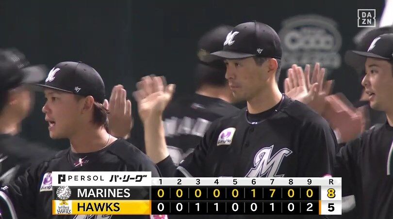 【ソフトバンク対ロッテ13回戦】ロッテが8-5でソフトバンクに逆転勝利!七回に3押し出し四球やソトの3ランなどで一挙7得点で逆転!ソフトバンクは3日連続逆転負け