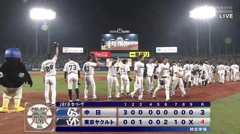 【ヤクルト対中日14回戦】ヤクルトが4-3で中日に逆転勝利!5位中日に連勝でゲーム差2・5に接近!小沢が今季初勝利!中日は逆転負けで3連敗