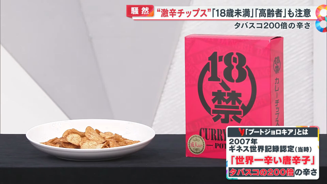 スタジオでは、この「激辛ポテトチップス」の実物を紹介。MCで俳優の谷原章介は、かおりをかぎ「すごく強いにおい」と印象を明かし「ただね、辛みのにおいと同時にちょっとおいしそうなにおいもして」と切り出し「だってここのメーカーってきちんと、18禁、成人向け、食べ方だったりとかすごくきちんと使用上の説明は書いているわけじゃないですか?だから食べ方?食べる方が気をつけないといけないなってすごくあると思うんです」と指摘した。