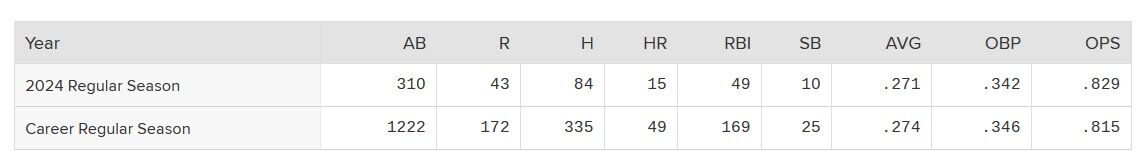鈴木誠也 打率.271 15本 49打点 出塁率.342 長打率.487 OPS.829