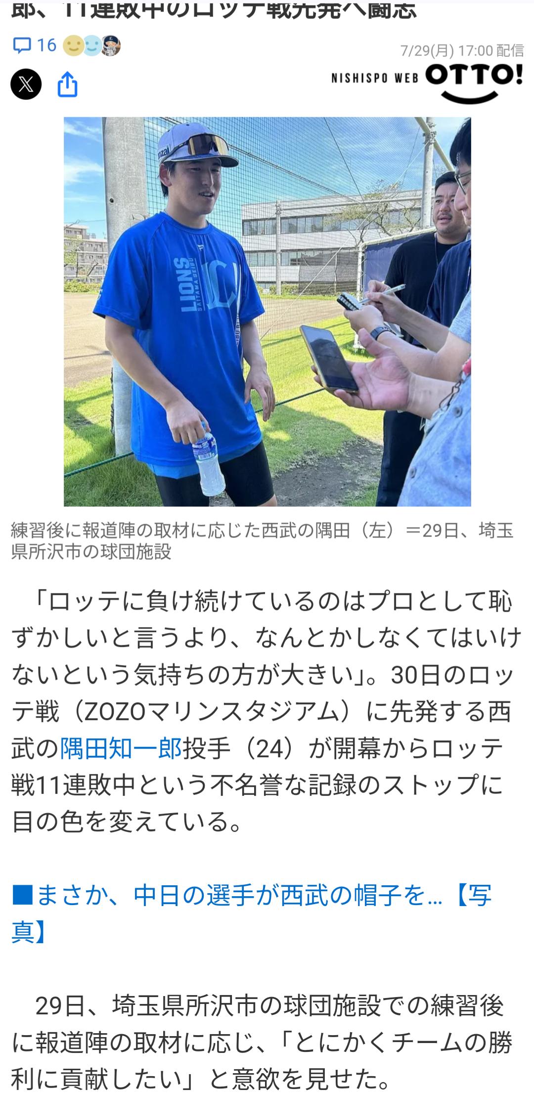 西武隅田「ロッテに負け続けているのはプロとして恥ずかしいと言うより、なんとかしなくてはいけない」