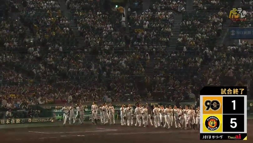 【阪神対巨人16回戦】阪神が5-1で巨人に勝利!5連勝で巨人と2.5差!才木リーグトップ9勝目!大山は2戦連発&5戦連続打点!巨人は連勝5でストップ