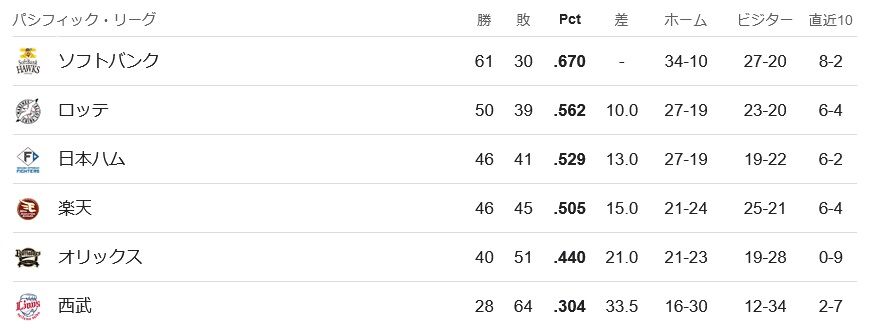 【悲報】首位SBと最下位西武、33.5ゲーム差