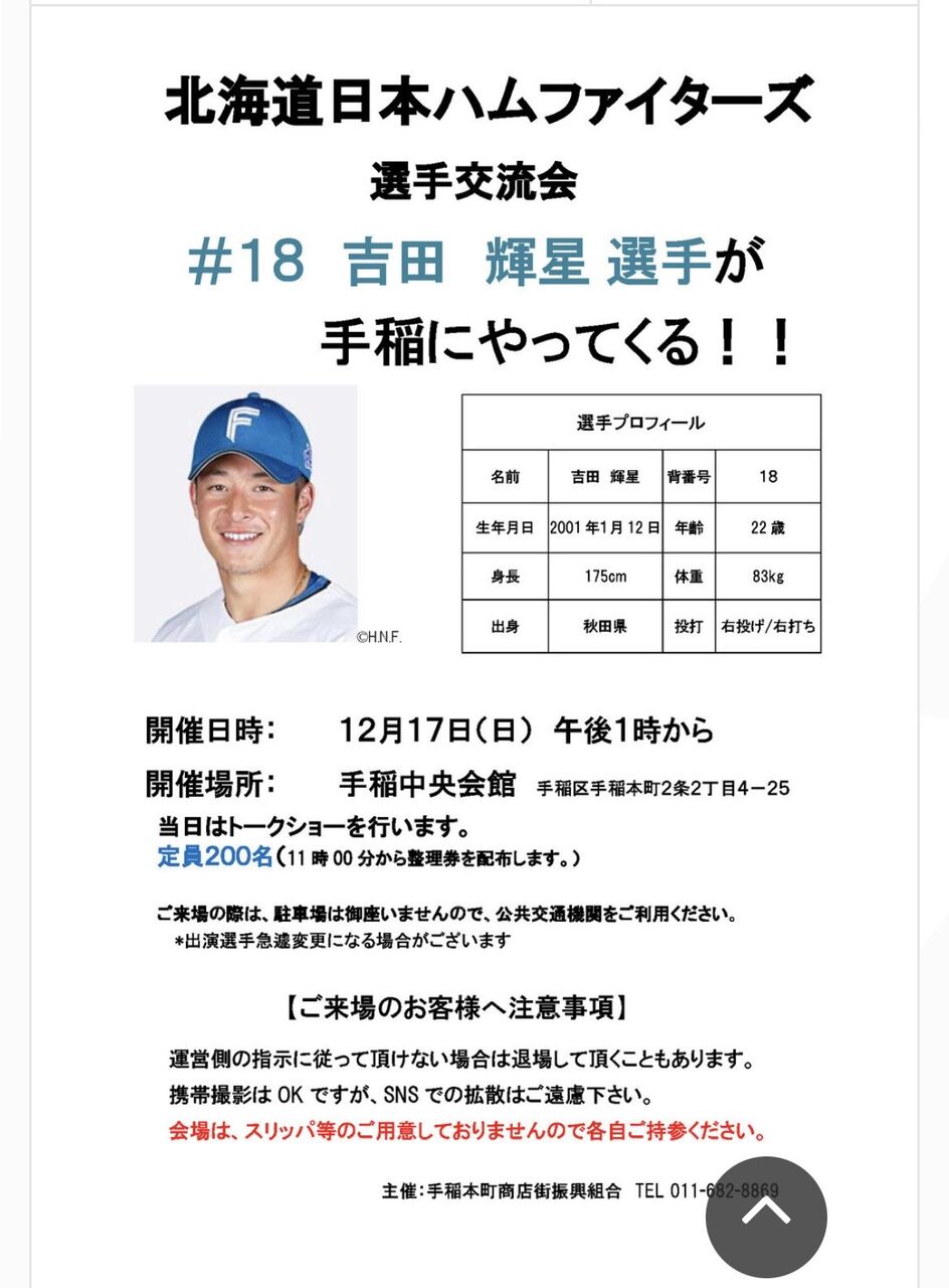 吉田輝星さん、12月17日に札幌でトークショー開催!