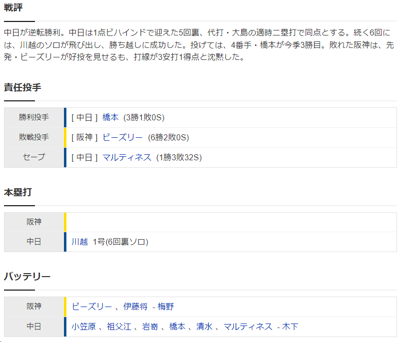 阪神中日と戦うのは1週間後だし、リリーフ疲弊とかも関係ないし