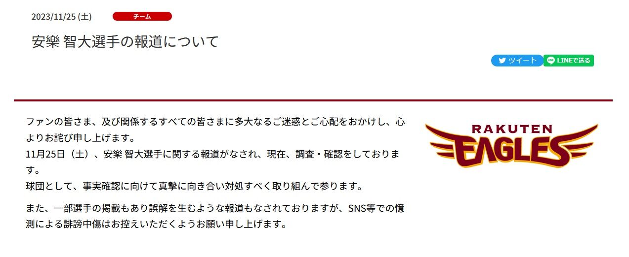 楽天イーグルス公式発表