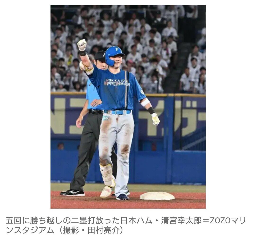 5試合連続で4番に座る日本ハム・清宮幸太郎内野手(25)が、ロッテ・佐々木に襲い掛かった。1-2の三回は右前へ同点打。一、二塁間に挟まれたがタッチを避けて決死のヘッドスライディングで二塁に進塁した。