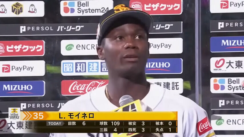 SBモイネロ 防御率1.64(1位)10勝(2位)143回(1位)被打率.182(1位)WHIP0.90(1位)