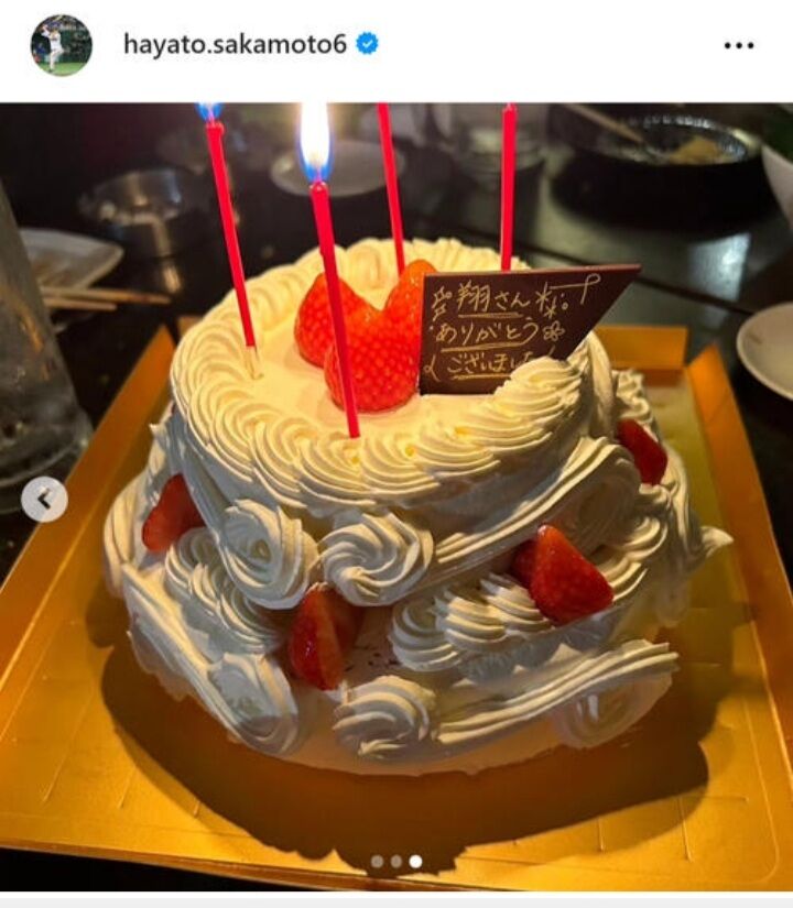 中田翔「サプライズで勇人さん来た!パシャッ」坂本勇人「翔の送別会!パシャッ」「ありがとうケーキ!パシャッ」