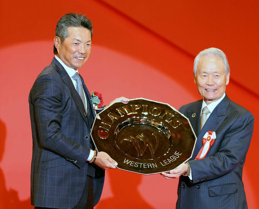 今季はファーム日本一に輝き、「今日が2軍監督としての仕事納め」と登壇すると、「来季からはホークスの1軍監督として指揮を執ることになりますが、今日ここにいる選手たちは1軍に近いことは間違いないです。あと一つ、何か加えることができれば、必ず1軍の舞台で活躍できる選手たちばかりです。その選手たちが来季、このあとの2部のNPBアワーズで表彰されるような活躍を期待して、あいさつに変えさせていただきます」と出席したリチャード、尾形、生海らにゲキを飛ばした。