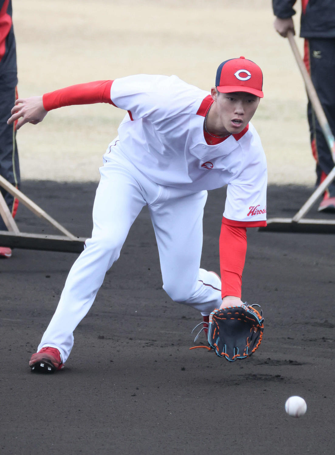 「今年から二遊間も外野も挑戦して、いろんなポジションを守って、ユーティリティーで、ということを意識して頑張ってきました。カープの先輩である上本選手のように、どこのポジションでも活躍しているので目指したいです」