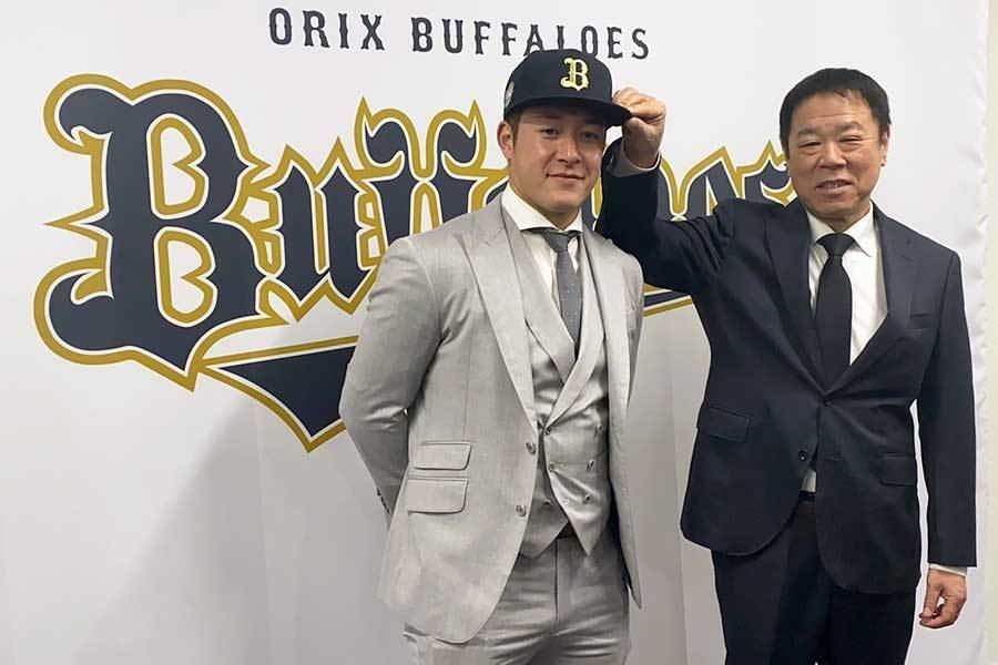 新たな背番号は「23」に決定した。オリックスナインには「大阪も初めてなので、教えていただけるとありがたいです」とお願いも。「打線もすごくいい。投手陣の球速が速い。するべくして3連覇していると思う」と印象を語った。