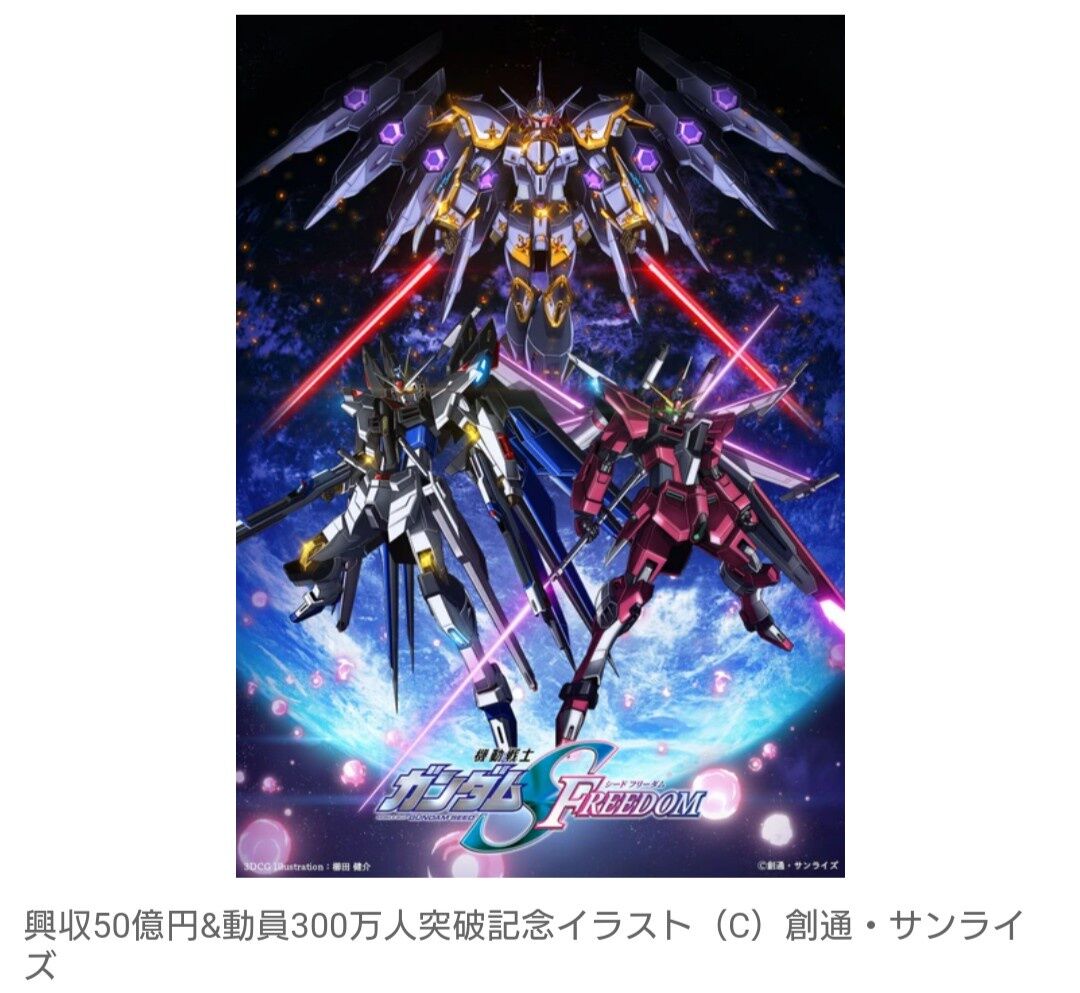 シリーズの完全新作となる劇場版『機動戦士ガンダムSEED FREEDOM』のストーリーは『機動戦士ガンダムSEED DESTINY』の続編となり、戦いが続く世界でキラやアスラン、シンたちの新たなストーリーが展開され、5月に全国的な上映が終映となり、興行収入49億円、動員290万人を突破した。