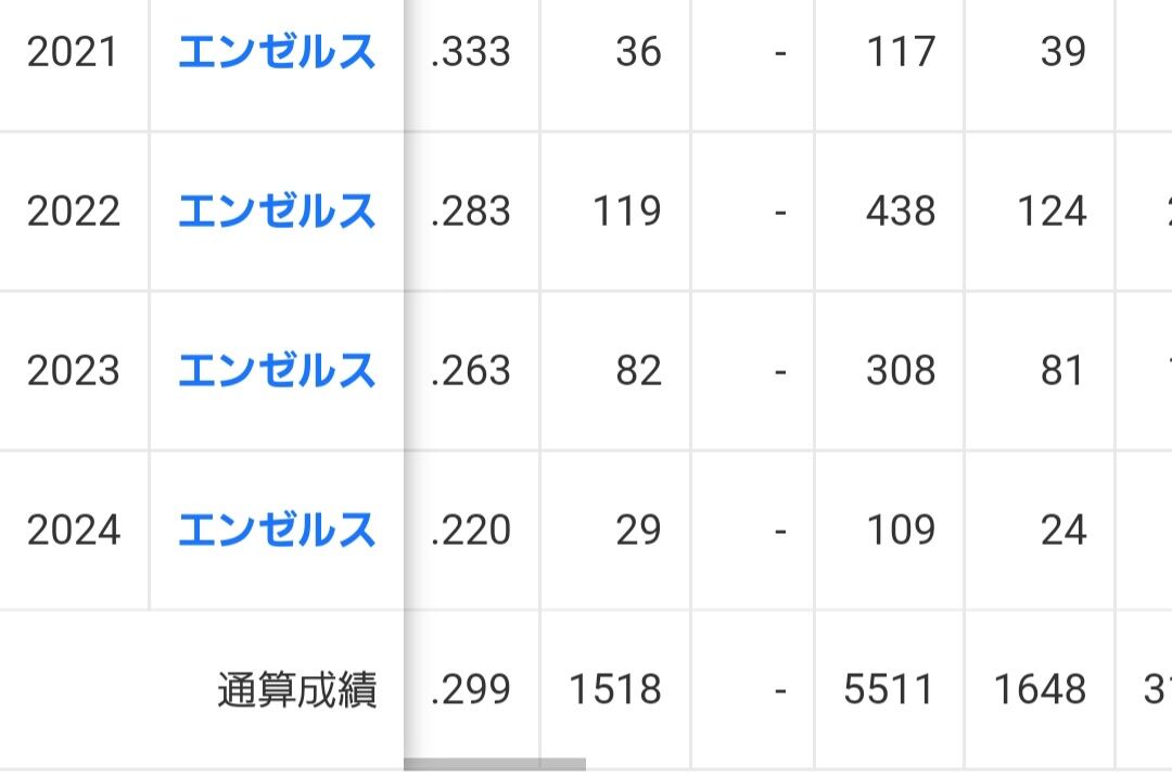 トラウト(年俸50億円)のこれまでの出場試合数ww