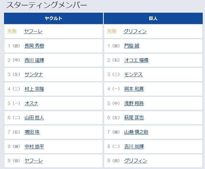 8 (捕) 中村 悠平 8 (二) 吉川 尚輝