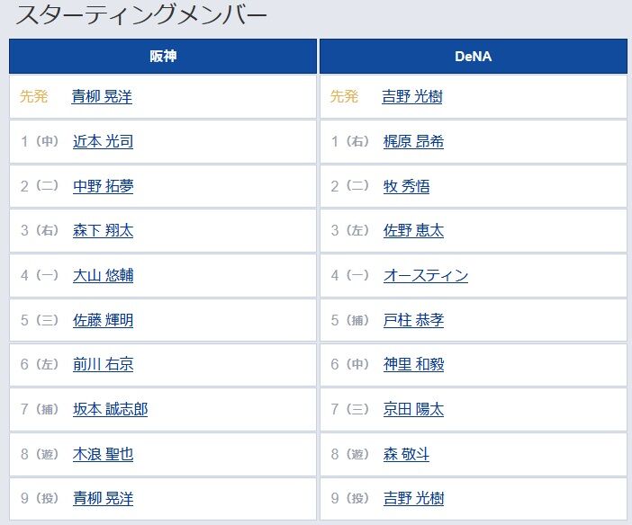 【阪神対DeNA24回戦】6(左) 前川 右京 7(捕) 坂本 誠志郎